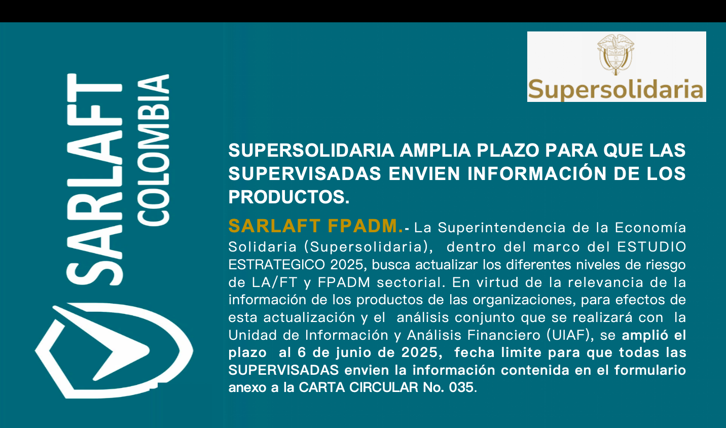 OFICIALES DE CUMPLIMIENTO del sector solidario, esta es una excelente oportunidad para ampliar conocimiento para el ejercicio de sus funciones a través del DIPLOMADO ESTANDAR PARA OFICIALES DE CUMPLIMIENTO, en línea, desarrollado por la UIAF y el Instituto de las Naciones Unidas para la formación e investigación UNITAR. Ejes temáticos: 1. Sistema de Administración de…